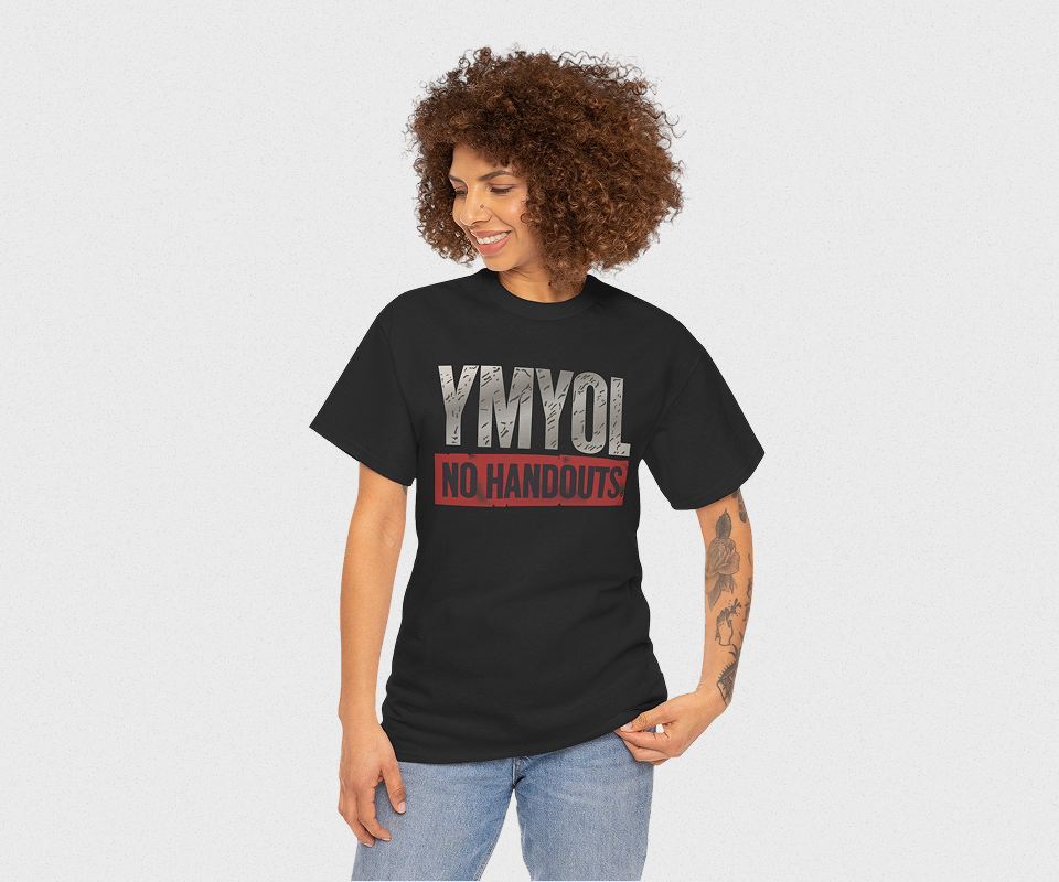 Nothing’s given. Everything’s earned. The No Handouts Tee is built for the hustlers who refuse shortcuts and grind for every win. Featuring bold YMYOL lettering with a distressed finish and a striking red “NO HANDOUTS” stamp, this design makes a statement that can’t be ignored.